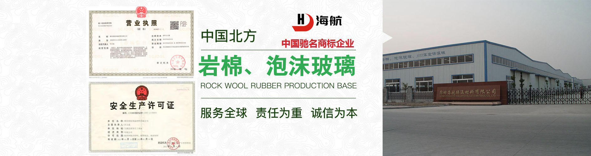 廊坊市海航保溫材料有限公司 地處河北廊坊留各莊高新技術(shù)產(chǎn)業(yè)園區(qū),是集研發(fā)、生產(chǎn)和銷售于一體的大型企業(yè),擁有11年保溫建材行業(yè)生產(chǎn)經(jīng)驗(yàn),公司產(chǎn)品齊全,其中泡沫玻璃制品包括: 泡沫玻璃保溫板 、 泡沫玻璃保溫管 、 泡沫玻璃保溫磚 ; 巖棉制品包括 : 巖棉板 、 復(fù)合巖棉板 、 外墻巖棉板 、 巖棉氈 、 巖棉條 、 巖棉管 等保溫材料。 產(chǎn)品廣泛應(yīng)用于地鐵、樓房屋頂、外墻防火隔離帶、石化、發(fā)電、航天、 鋼鐵、煉油、乙烯等行業(yè)的保冷、防腐、工程中。采用世界先進(jìn)的設(shè)備,成熟的工藝生產(chǎn),智能化操控,廢棄物循環(huán)利用,產(chǎn)品質(zhì)量超過(guò)美國(guó)ASTM標(biāo)準(zhǔn), 公司年產(chǎn)量50萬(wàn)立方米的泡沫玻璃,80萬(wàn)立方米橡塑海綿,5萬(wàn)噸巖棉制品,4萬(wàn)噸玻璃棉制品,16萬(wàn)立方米擠塑板
